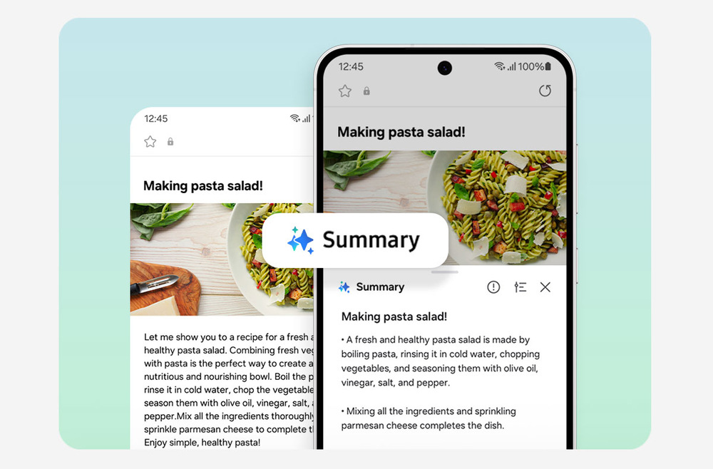 Prostřednictvím umělé inteligence a funkce Summary telefon umí například prohlédnout rozsáhlou webovou stránku a sumarizovat z ní to nejdůležitější, abyste byli produktivnější a vyhnuli se zdlouhavému hledání v textu.